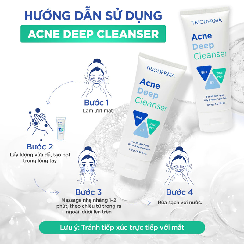 Cách sử dụng Gel rửa mặt Trioderma Ance Deep Cleanser