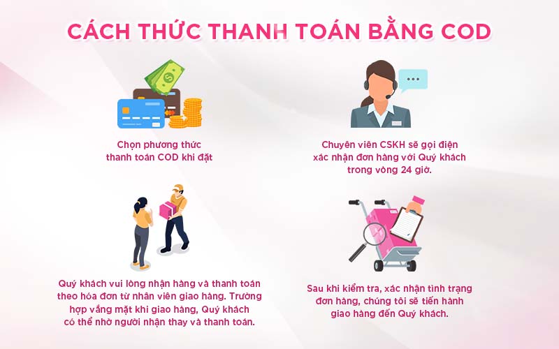 COD (dịch vụ giao hàng nhận tiền) là phương thức thanh toán bằng cách đưa tiền trực tiếp cho người vận chuyển ngay sau khi nhận được hàng.