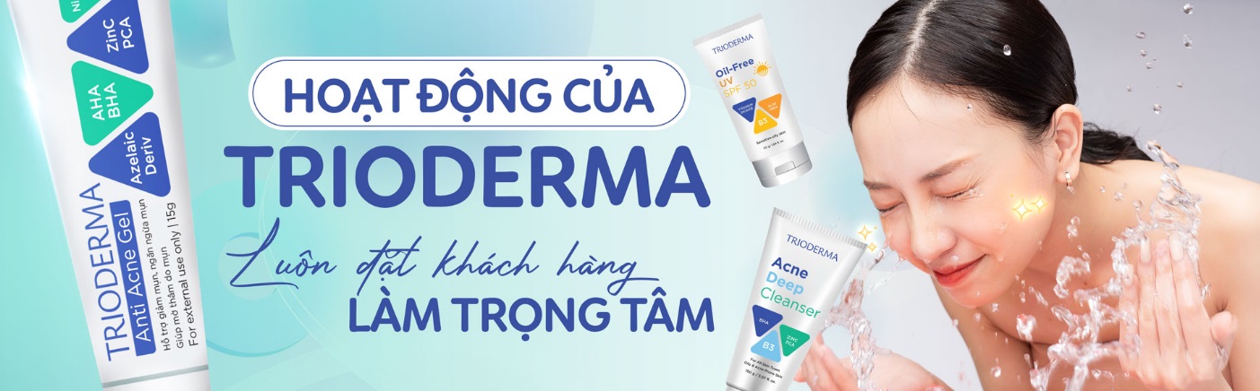 Lời khuyên từ dược mỹ phẩm Trioderma là bắt đầu với bộ đôi cơ bản là sữa rửa mặt + Kem chấm mụn. Kiên trì ít nhất 8 tuần rồi theo dõi tiến trình bằng ảnh chụp và điều chỉnh tần suất sử dụng thay vì đổi sản phẩm.