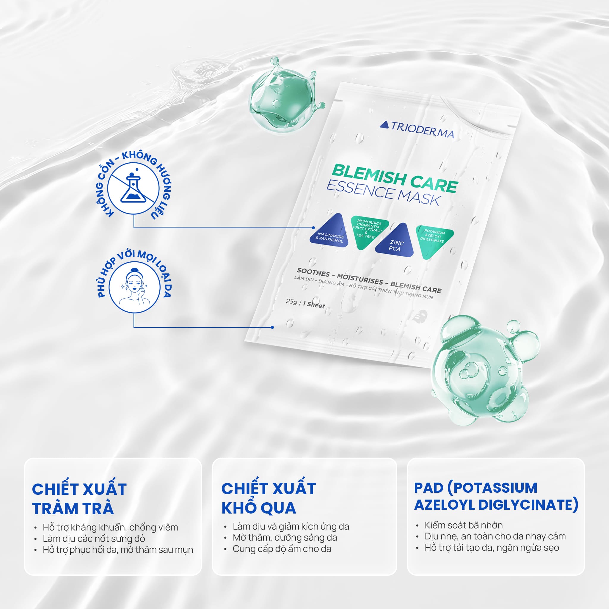 Mặt nạ BLEMISH CARE ESSENCE MASK là giải pháp chuyên biệt giúp làm dịu nhanh chóng và hỗ trợ phục hồi tối ưu cho làn da đang gặp vấn đề về mụn. Với công thức giàu hoạt chất chuyên sâu, sản phẩm giúp kiểm soát dầu thừa, giảm sưng viêm và ngăn ngừa các vết thâm sau mụn nhanh chóng.
