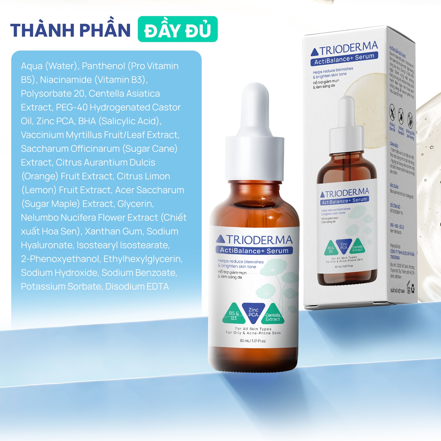 Trioderma ActiBalance+ Serum là lựa chọn hoàn hảo cho những ai đang tìm kiếm giải pháp toàn diện cho làn da dầu, da mụn, và da hỗn hợp.