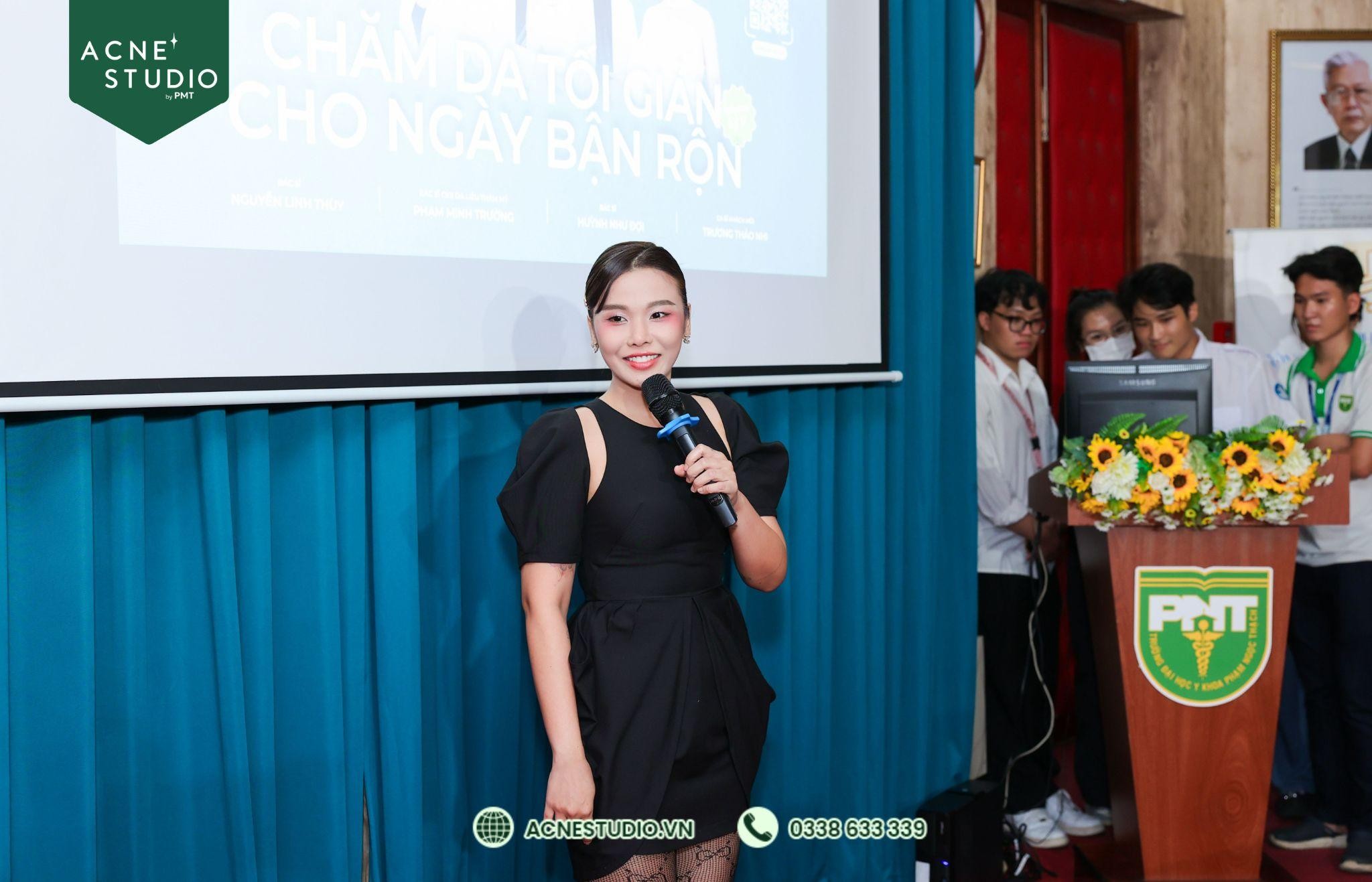 Tiếp nối, Bác sĩ Nguyễn Linh Thùy - Co-Founder & Manager ACNE Studio By PMT đã chia sẻ về phương pháp kiểm soát mụn đúng cách, giúp các bạn sinh viên hiểu rõ hơn về quy trình chuẩn y khoa. Bác sĩ Linh Thùy chia sẻ: “Xuất phát từ thực trạng nhiều bạn gặp khó khăn trong việc tìm kiếm phương pháp kiểm soát mụn hiệu quả, ACNE Studio by PMT đã ra đời với sứ mệnh tiên phong trong việc đưa ra những giải pháp đúng hướng, kết hợp công nghệ hiện đại để đạt được mục tiêu nhanh chóng.”