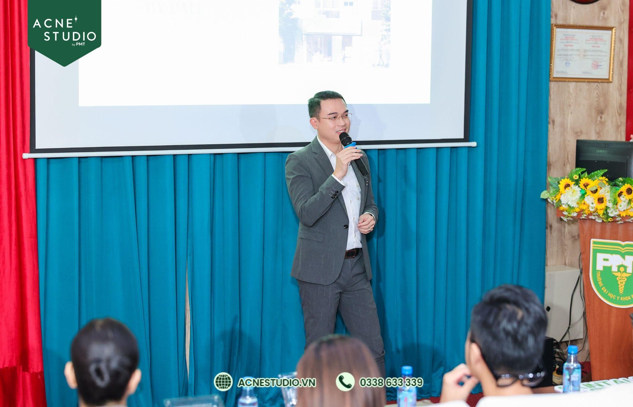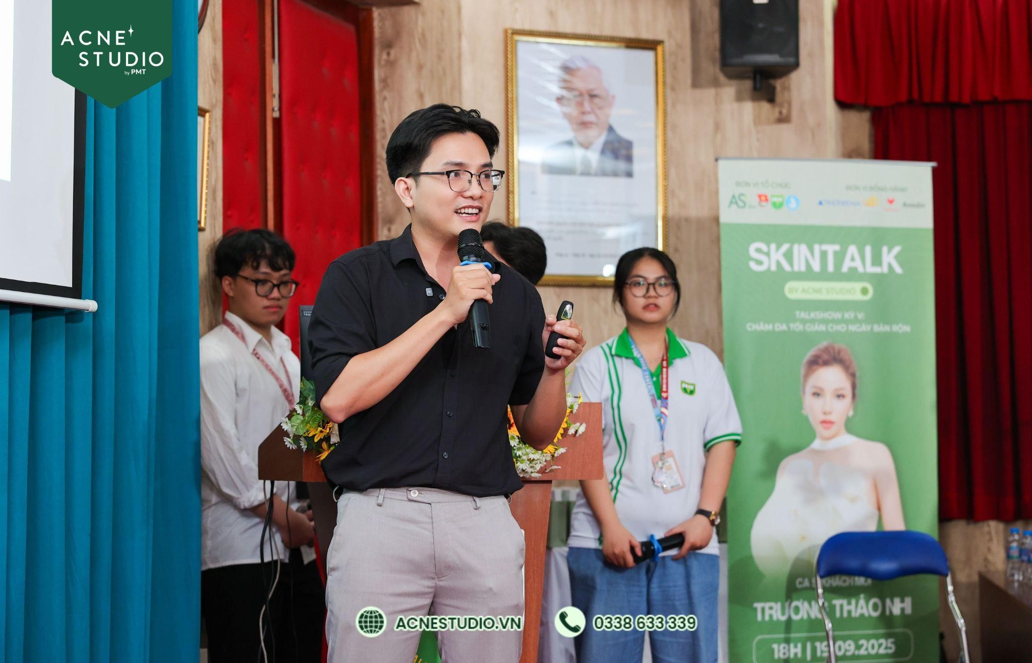 Sân khấu Skintalk đã trở thành nơi các bác sĩ chuyên môn của ACNE Studio truyền lửa và kiến thức. Bác sĩ CKII Da liễu Thẩm mỹ Phạm Minh Trường - Founder ACNE STUDIO By PMT đã có một buổi chia sẻ đầy tâm huyết về mụn, phân tích sâu các phương pháp chăm da mụn từ truyền thống đến khoa học, đồng thời nhấn mạnh vai trò của việc kiểm soát mụn không dùng thuốc một cách an toàn và bền vững.