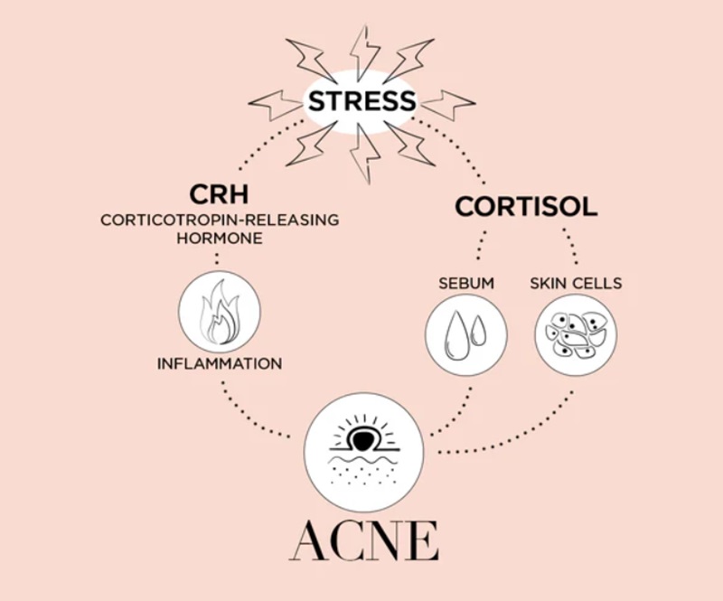 - Có mụn → Stress về ngoại hình → Tăng cortisol → Mụn nhiều hơn…