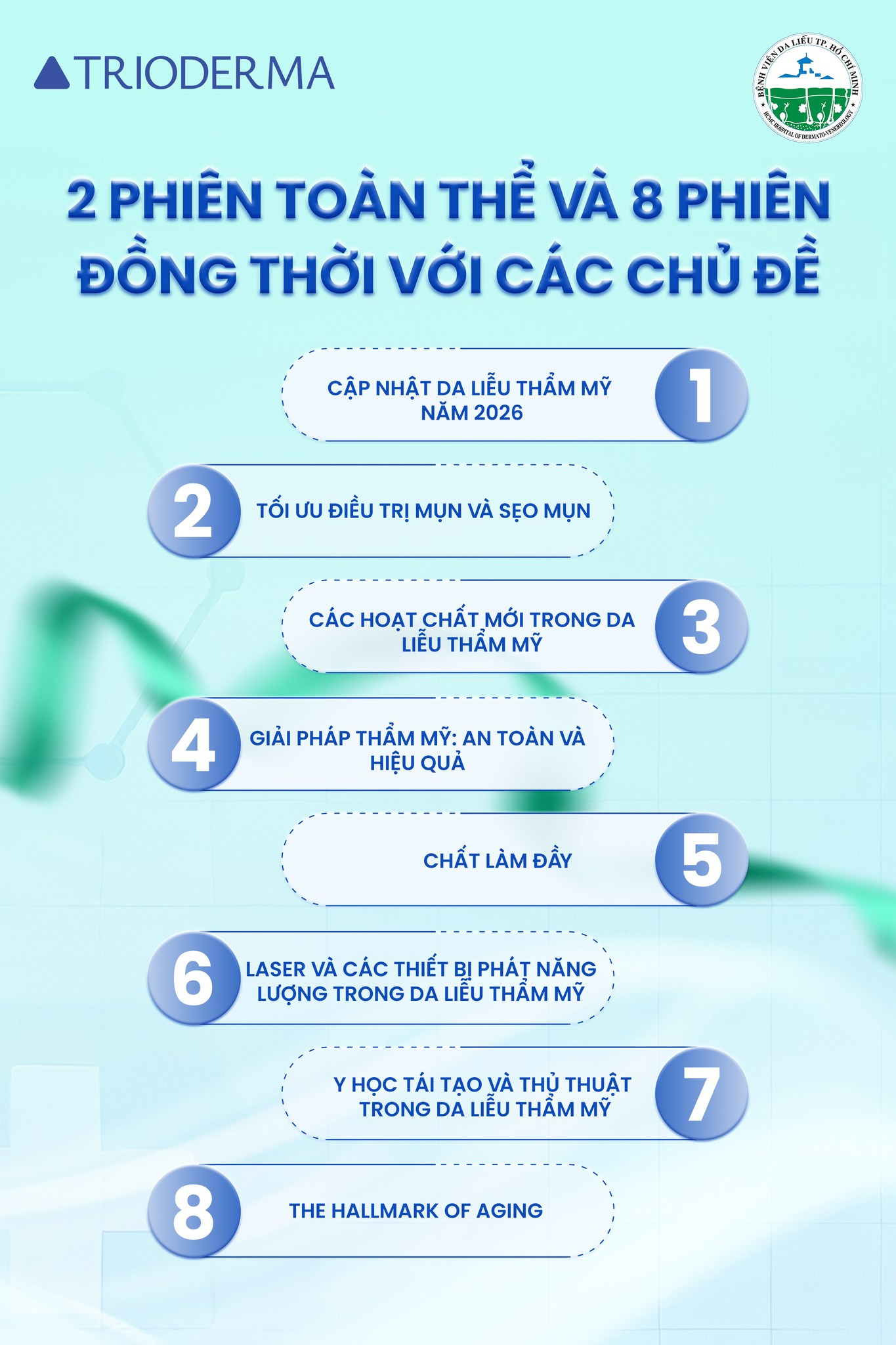 Hội nghị Da liễu Thẩm Mỹ Miền Nam 2026 là cơ hội tuyệt vời cho quý bác sĩ tham dự cập nhật lượng kiến thức da liễu khổng lồ từ điều trị mụn và sẹo mụn, vật liệu tái tạo sinh học tái tạo da, công nghệ laser và ánh sáng trong trẻ hóa da, chất làm đầy…